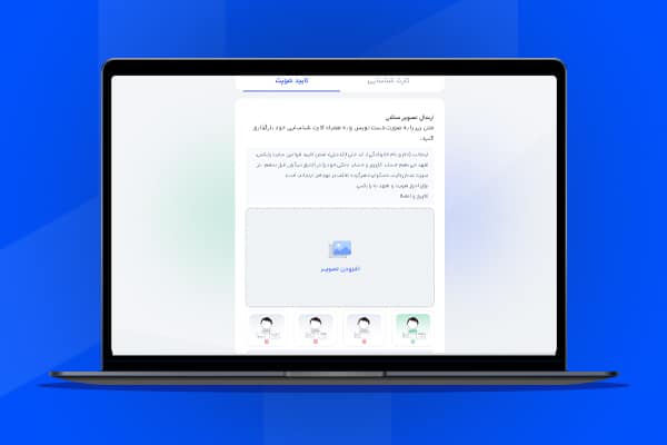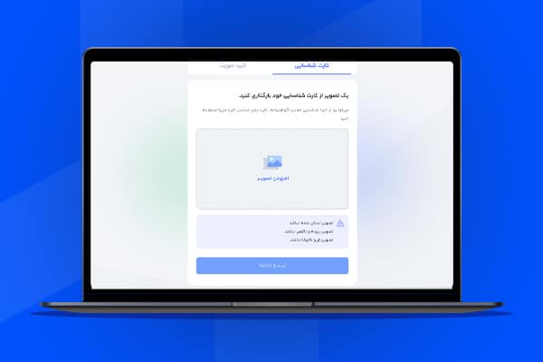 در این مرحله لازم است تصویر یکی از کارتهای شناسایی معتبر خود از جمله کارت ملی، گواهینامه یا … را بارگذاری کنید.