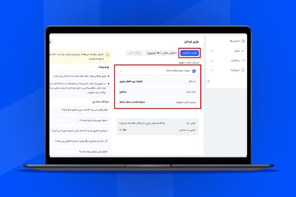 - برای مبالغ بالا توصیه میشود ابتدا یک انتقال آزمایشی انجام دهید تا مطمئن شوید همه مراحل درست پیش میرود.