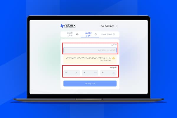 در این مرحله با وارد کردن کد ملی و تاریخ تولد، دکمه «ثبت و ادامه» فعال میشود و میتوانید وارد مرحله بعدی شوید.