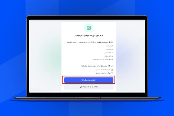 آخرین مرحله برای احراز هویت پیشرفته، بارگذاری یک عکس سلفی با بههمراه داشتن کارت شناسایی و متن دستنویس است.